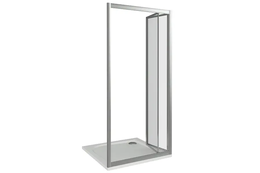 Душевая дверь Bas Infinity обладает размером 80х185 см. Конструкция состоит из двух складных секций. Устанавливается в облицованный кафелем угол или нишу ванной комнаты на поддон или непосредственно на пол со встроенным душевым каналом или трапом