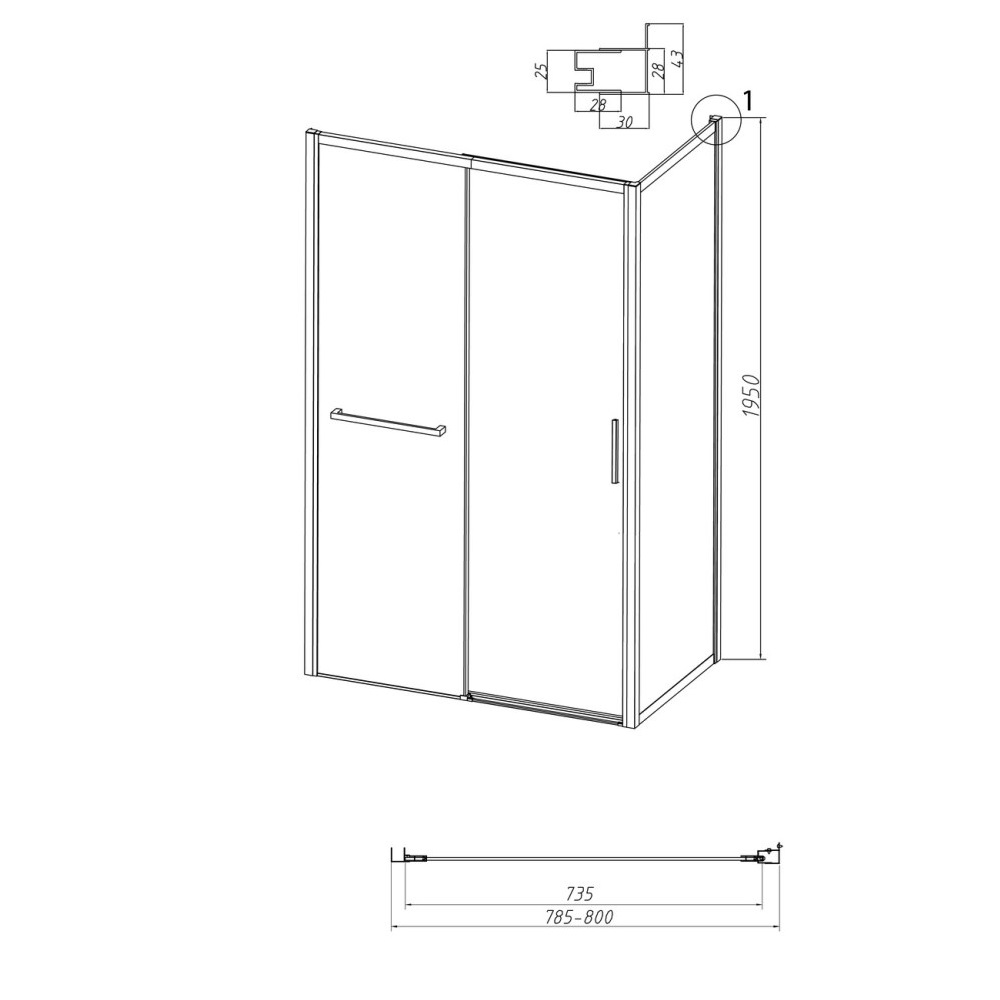Душевая стенка Grossman Style имеет размер 80х195 см. Прямоугольная форма, цвет профиля — черный, исполнение полотна двери — тонированное. Конструкция состоит из 1 секций. Неподвижная механизм открывания. Устанавливается в облицованный кафелем угол или нишу ванной.