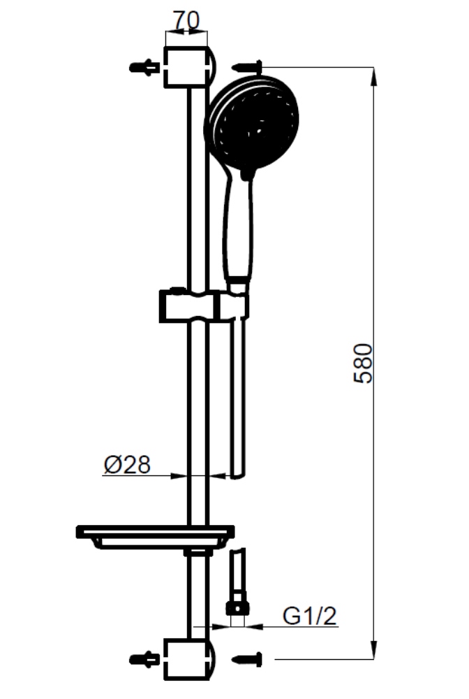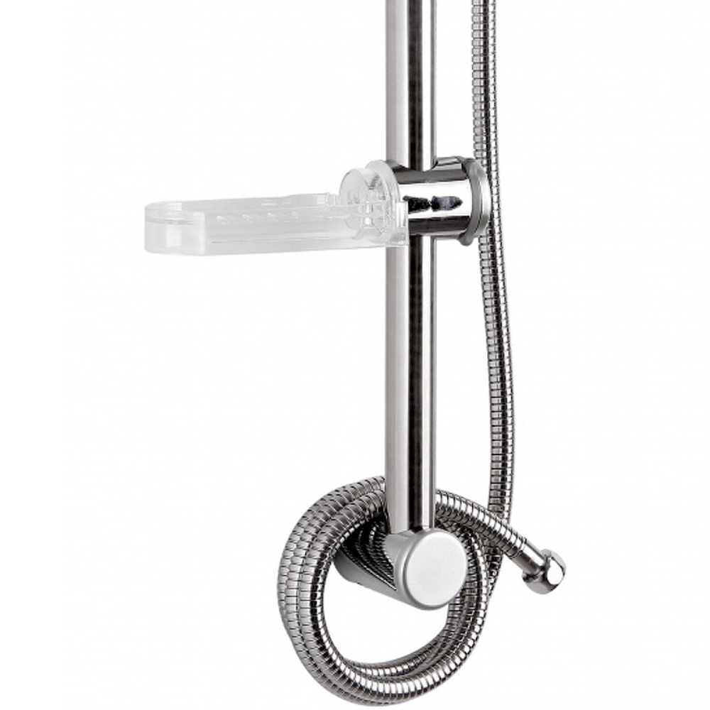 Душевой гарнитур Azario Esta имеет высоту 58 см . В комплект поставки входит душевая стойка, душевая лейка, настенное крепление, шланг для душа.