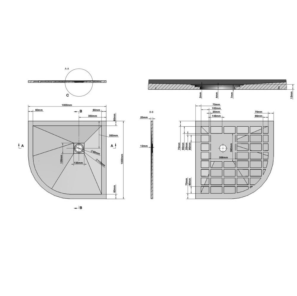 Душевой поддон Grossman Strong имеет размер 100х100 см. Форма — четверть круга, низкий, цвет поддона графит. Для установки на пол и на подиум.