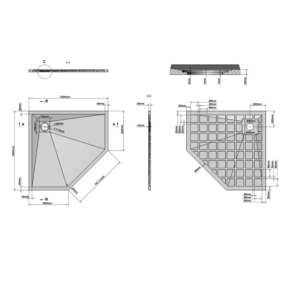 Душевой поддон Grossman Strong имеет размер 100х100 см. Форма — пятиугольная, низкий, цвет поддона графит. Для установки на пол и на подиум.