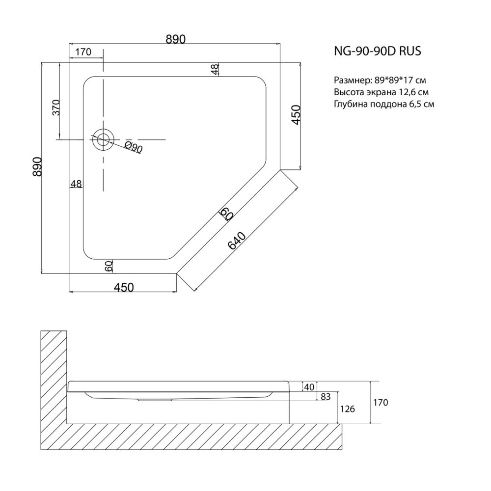 Душевой поддон Niagara Nova имеет размер 90х90 см. Форма — , низкий, цвет поддона пятиугольная. Для установки на ножки.