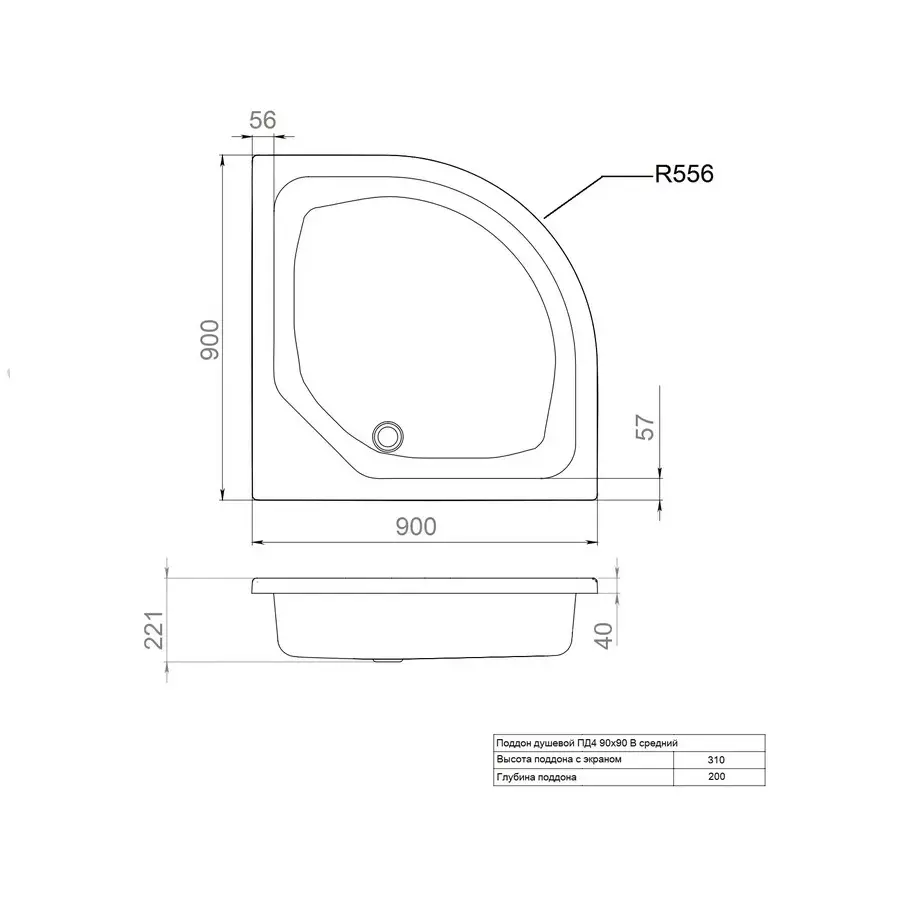 Душевой поддон Triton ПД4 ДК 90х90см, четверть круга, средний
