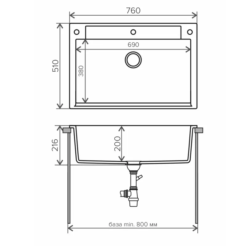 Мойка кухонная Polygran Argo имеет размеры 76х51 см., ширина чаши: 69 см. Прямоугольная форма. Цена указана за мойку со сливом-переливом.
