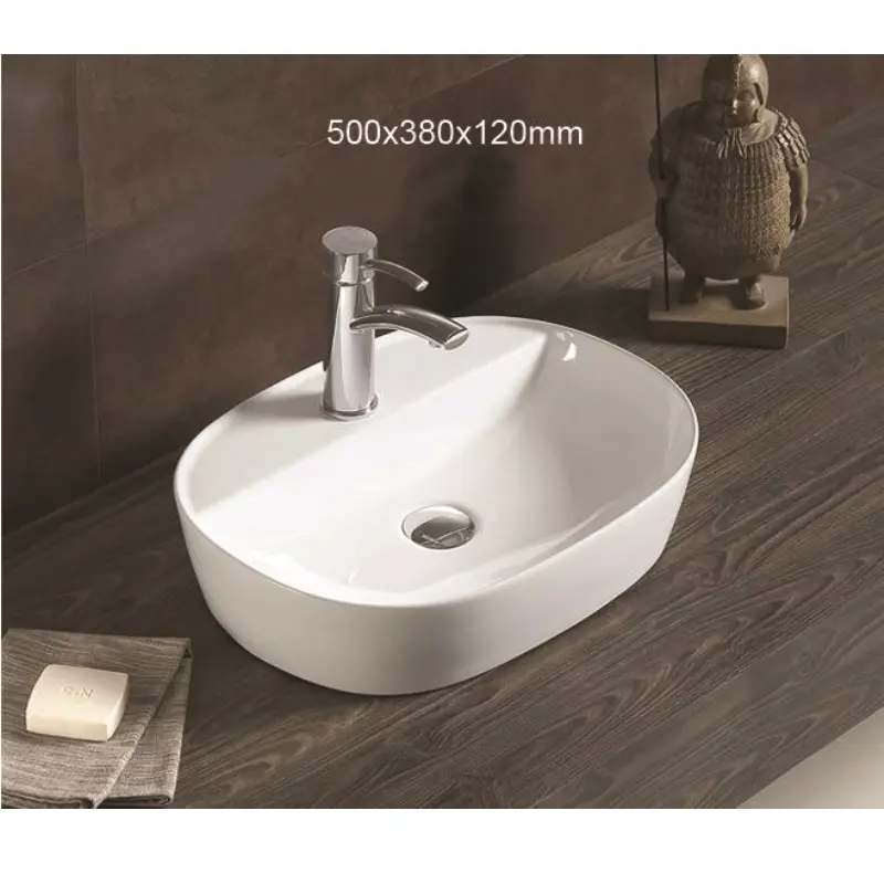 Раковина накладная Azario AZ имеет размер 50х38 см, обладает овальной формой, оборудована одним отверстием для смесителя. Модель гармонично впишется в интерьер любой ванной комнаты. Материал изготовления фаянс.
