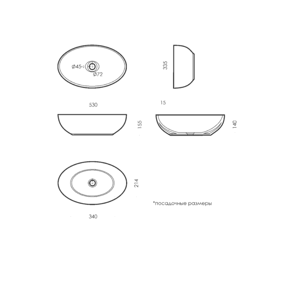 Раковина накладная Sanita Luxe имеет размер 33,5х53 см, обладает овальной формой. Без отверстий для смесителя. Модель гармонично впишется в интерьер любой ванной комнаты.