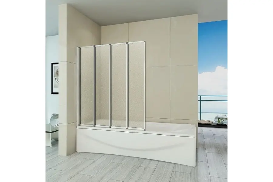 Шторка для ванны Bas Screen обладает размером 100х140 см. Конструкция состоит из четырёх секций: одной неподвижной и трёх складных. Устанавливается на любые прямоугольные ванны с ровными горизонтальными бортами.