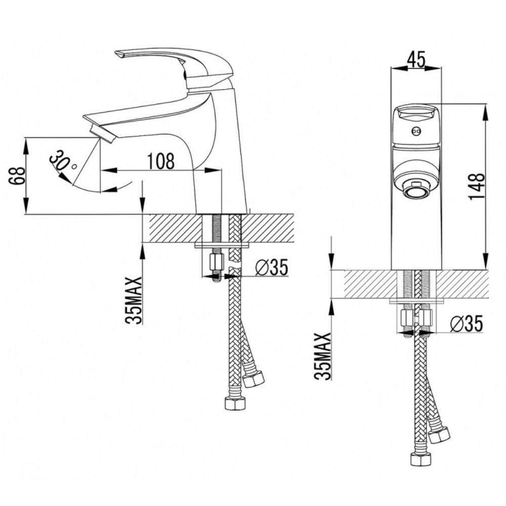 Смеситель для раковины Azario Sintra имеет литой излив. Изготовлен из качественной латуни и имеет защитное покрытие, что способствует устойчивости к коррозии и резким перепадам температуры. Управление рычажное, горизонтальный монтаж на одно отверстие.