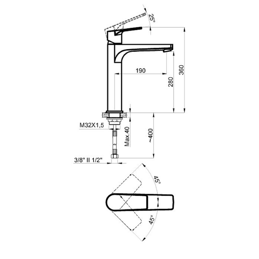 | Тип изделия | Смеситель для накладной раковины высокий |