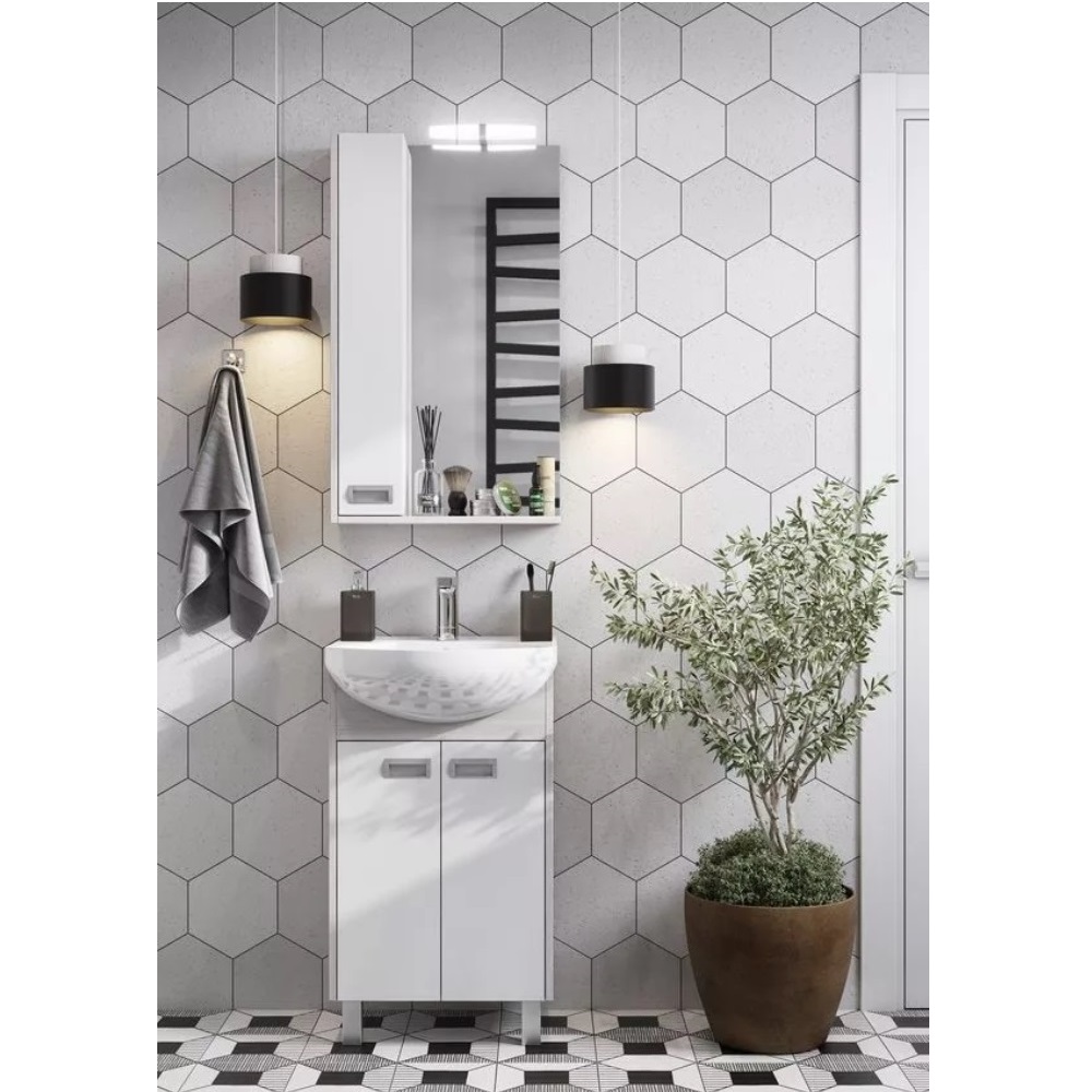 Тумба напольная Aquaton Бекка 50 с раковиной Смайл Белый / Дуб Сомерсет 1A2108K1BAC20