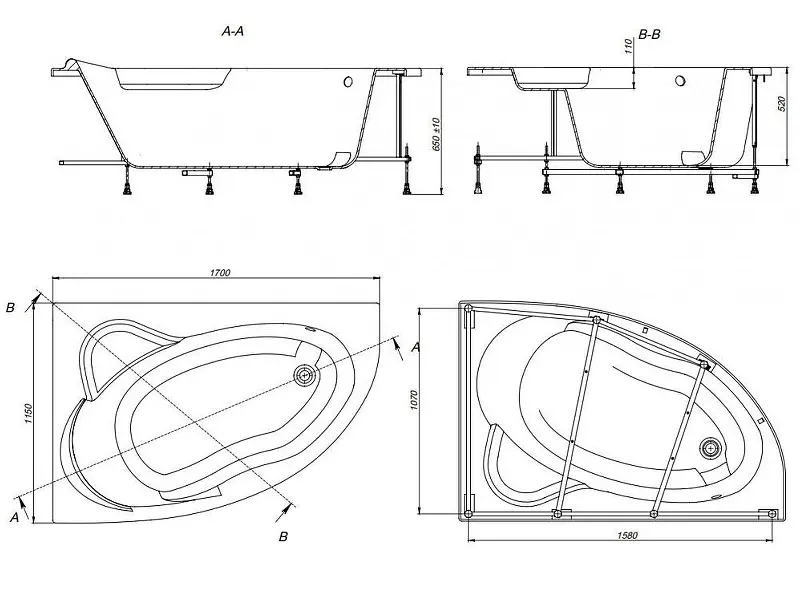 Ванна акриловая Roca из коллекции Luna имеет размер 170х115 см. Форма — асимметричная, сторона исполнения — правая. Страна производитель — Испания. Дополнительно комплектуется каркасом или опорой (ножками), смесителем, сточным комплектом, передней и боковой панелью.