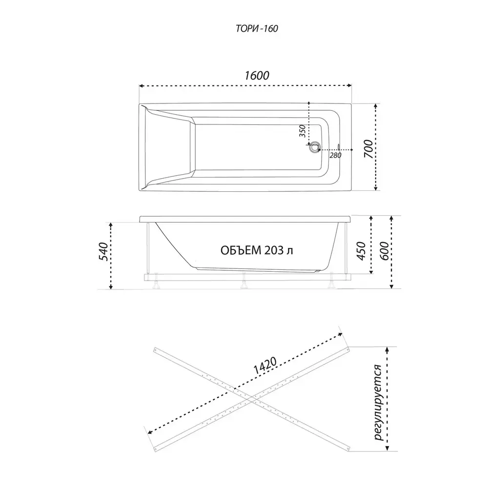 Акриловая ванна Triton из коллекции Тори имеет размер 160х70 см. Форма прямоугольная. Страна изготовитель — Россия. Каркас и установочный комплект, слив-перелив не входит в базовую комплектацию и приобретается отдельно. Дополнительно комплектуется смесителем, передней и(или) боковой панелью.