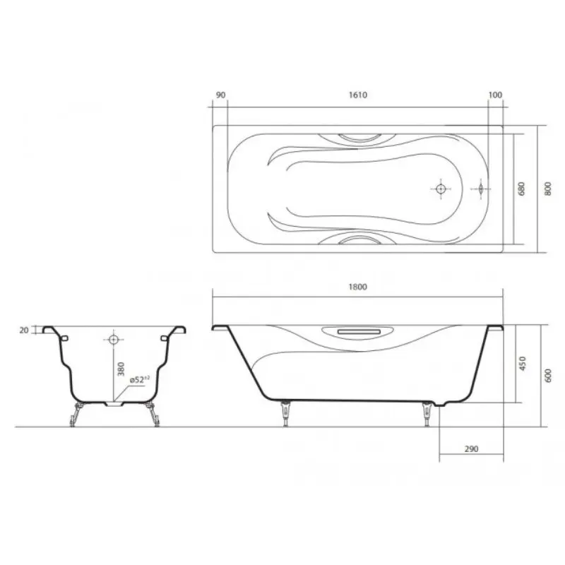 Ванна чугунная Aquatek Гамма 180х80 с 4-мя ножками Белый AQ8080F-00