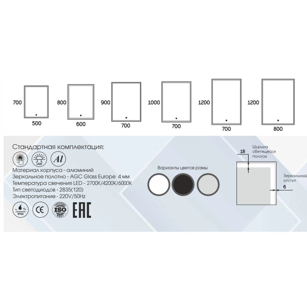 Зеркало Агата Strong 70 с сенсором ЗЛП633
